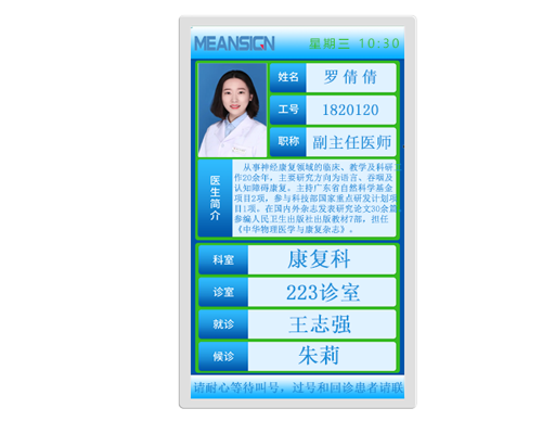 用途:医生诊室门口屏/二级分诊屏