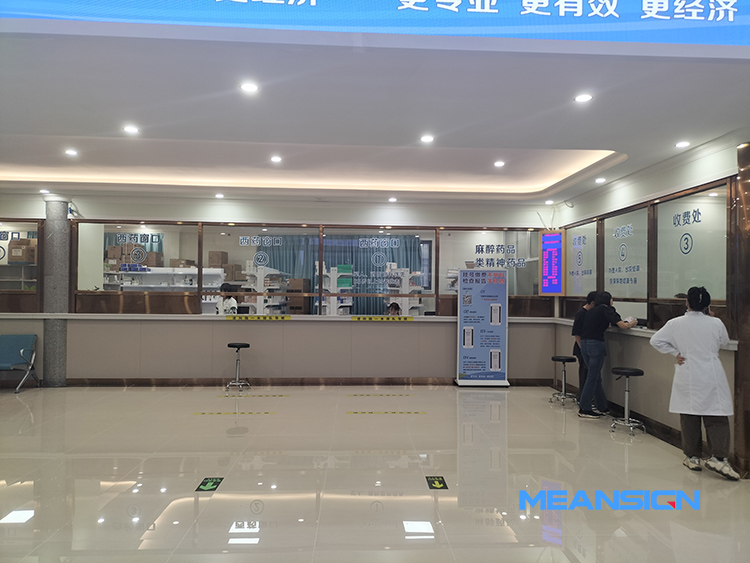 在导诊台,医院大厅,安装门诊综合屏,实时显示所有诊室的排队情况,当前就诊患者信息,等待就诊排队列表信息。语音广播同步呼叫,提醒患者前往就诊,同时还应用到检验室、药房取药窗口、缴费窗口等。